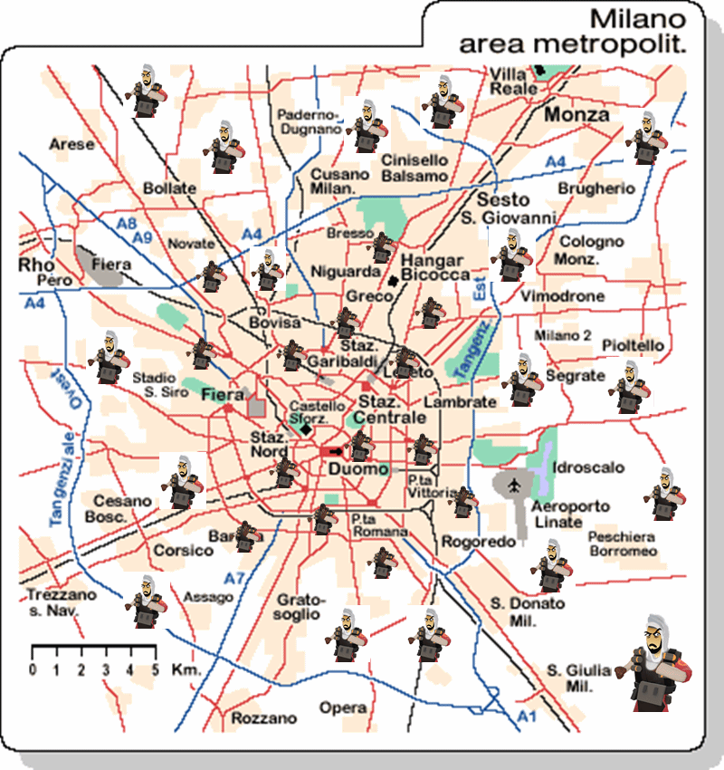 Il problema di milano non sono mica i luoghi degradati da bonificare, gli spacciatori e gli stupratori agli angoli delle strade. Non sono gli scippatori maghrebini che riducono in fin di vita le donne in bicicletta, no, l’emergenza è “dieci piccole Moschee”!.