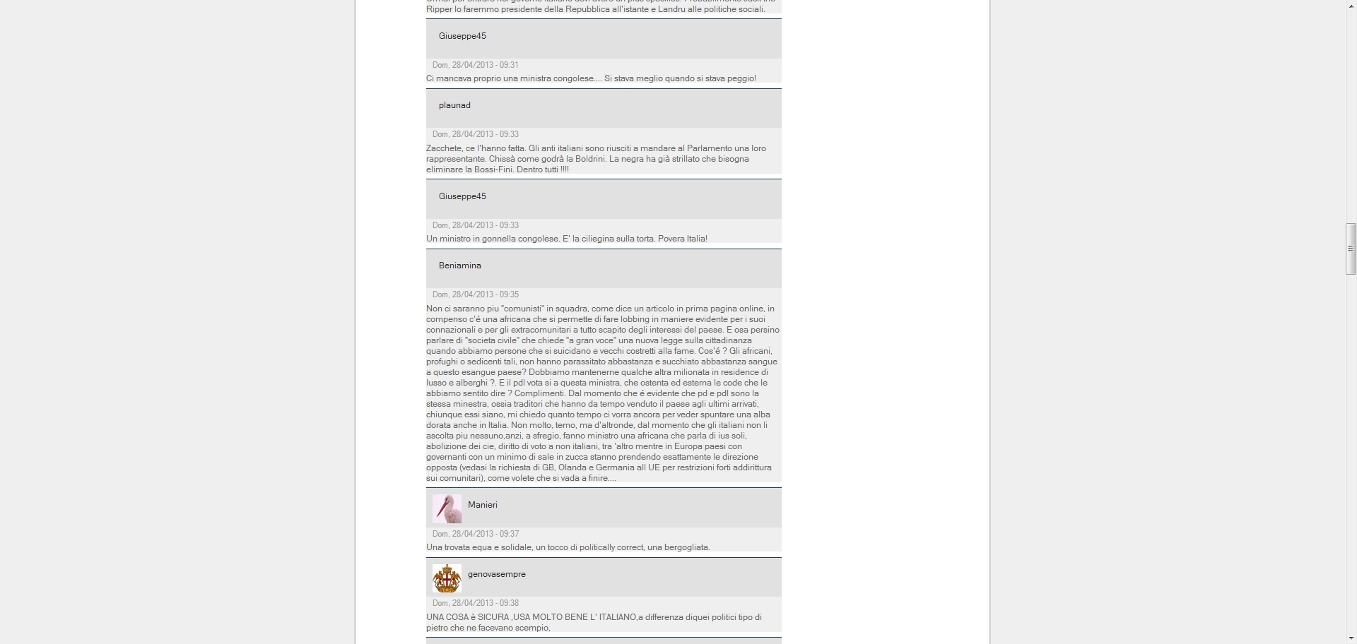 la base protesta, ma tanto alla fine fanno come gli pare e come hai detto tu non riportano nemmeno le notizie, sono troppo occupati nei loro miasmi orgiastici ora che “finalmente” abbiamo un governo multicolore… Un po’ come le femministe. Le femministe incallite un bianco spesso non lo vorrebbero neanche, ma se lo accettano gli fanno passare le pene dell’inferno per ogni mancanza, vera o presunta, e ne presumono molte. D’altro canto però se si sposano il muslim di turno diventano docili come agnellini ed anzi portabandiera più dei mariti della loro nuova (in)cultura. E’ il senso di disgregazione di questa società, tanti, troppi, vorrebbero uccidere un presidente democratico se di destra, ma sarebbero prontissimi ad accettare i peggiori despoti negri proclamarsi imperatori e mandare in giro per le strade le loro bandacce armate di negri a compiere stupri e massacri, almeno finché non li tocca personalmente…
